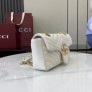 수입 정품원단 사용, 풀패키지 구성. GG Marmont 신상 디자인, 더블 G 장식 & 체인 스트랩 활용 가능. 블랙 V퀼팅 양가죽, 라이트 골드 하드웨어 적용. 내부 지퍼포켓, 외부 오픈포켓 구성. 사이즈: 22 × 12.5 × 6cm ㅡ #가방