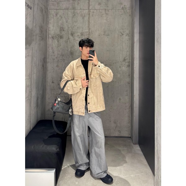 이탈리아 고밀도 트윌 데님 소재, 탄탄한 원단감 빈티지 워싱 옐로 컬러, 클래식한 데님 질감 남녀공용 사이즈: 1 / 2 / 3 / 4 ㅡ #의류