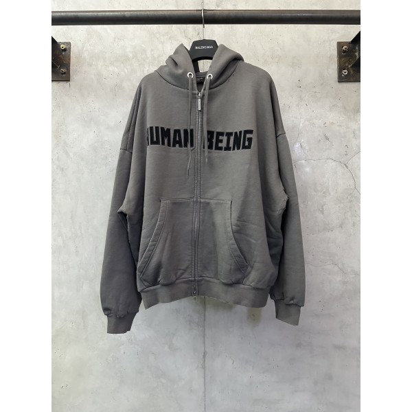 Balenciaga 발렌시아가 HUMAN BEING 시리즈 패치 장식 후드 집업 자켓 의류 > 남성 아우터
