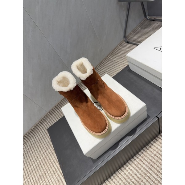 PRADA 프라다 삼각 버클 두꺼운 굽 숏부츠 신발 > 워커/부츠