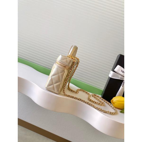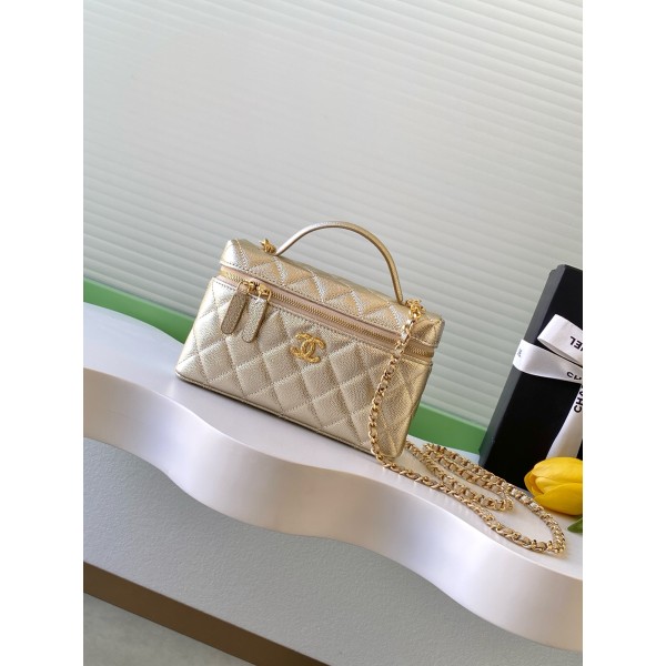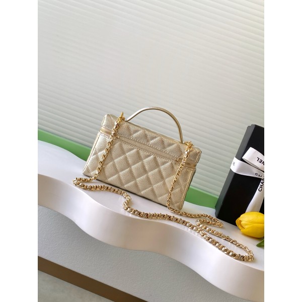 스타일: 블랙 다이아몬드 퀼팅 + 연골드 하드웨어 소재: 리치 레더, 섬세하고 내구성 우수 크기: 17 × 19.5 × 5 cm 특징: 손잡이 혹은 크로스백 가능, 체인 스트랩으로 다양한 스타일링 가능 디테일: 전면 더블 C 로고, 지퍼 여닫이로 안전함 수납: 스마트폰, 립스틱 등 일상 소지품 적합 활용: 출근, 외출 모두 적합, 실용적이면서 컬렉션 가치 있음 모델 번호: AP5020 ㅡ #가방