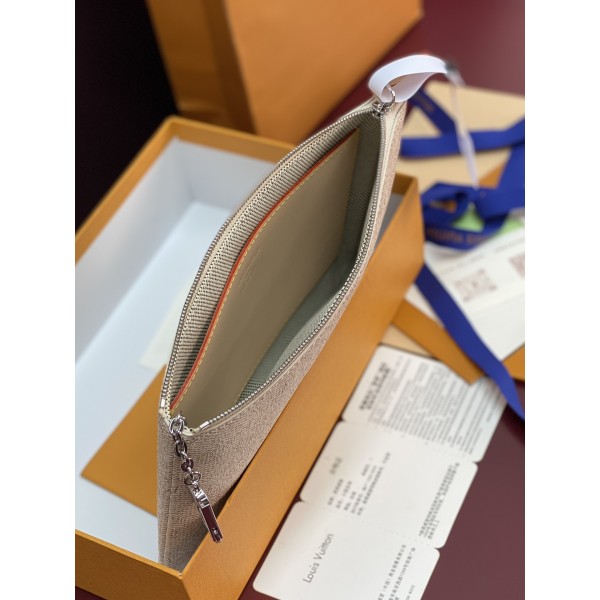 소재: Monogram Heritage 캔버스 (실크스크린 프린트) 특징: 시즌 컬러 적용, 광택 체인 키훅 수납: 열쇠·동전·지폐 가능 / 여권 수납 가능 / 대형 카드 슬롯 포함 활용: 여행용 파우치로 적합 사이즈: 15.5 × 1 × 24cm ㅡ #지갑
