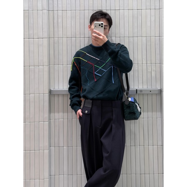 Loewe 로에베 레더 패치 스트레이트 울 슬랙스 팬츠 바지 의류 > 남성 PANTS