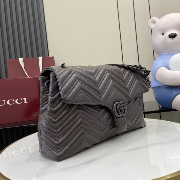 퀼팅 V라인 소가죽 & 더블 G 로고 체인 스트랩, 자석 여밈 내부 지퍼 포켓 / 뒷면 오픈 포켓 사이즈: 37.5 × 21 × 9cm 850659 컬러: 커피 브라운 ㅡ #가방