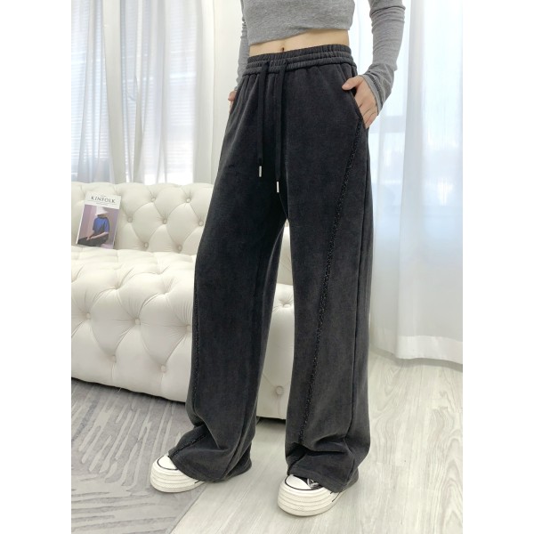 디자인: 사이드 라인 쥬얼 스트랩, 뒷포켓 핫픽스 로고, 하이웨스트 고무줄 허리 특징: 빈티지 워싱 면 소재, 찰랑거리는 와이드 핏으로 다리가 길어 보이는 효과 무드: 편안하면서도 화려한 '데일리스윗 & 힙스터' 스타일 사이즈: S, M, L ㅡ #의류