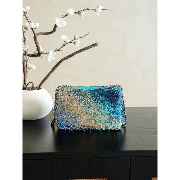 특징: 여름의 로망을 담은 무지개 그라데이션 시퀸(Sequin) 소재로, 각도에 따라 다채롭게 빛나는 독보적인 화려함이 특징 포인트: 부드러운 핑크부터 청량한 그린, 반짝이는 실버까지 이어지는 풍부한 컬러감이 달콤하면서도 럭셔리한 명품 무드를 선사 활용: 가벼운 옷차림에 포인트 아이템으로 제격이며, 파티나 특별한 모임에서 주인공이 될 수 있는 정교하고 정성스러운 디테일의 백 사이즈: 14 * 21 * 8 cm ㅡ #가방