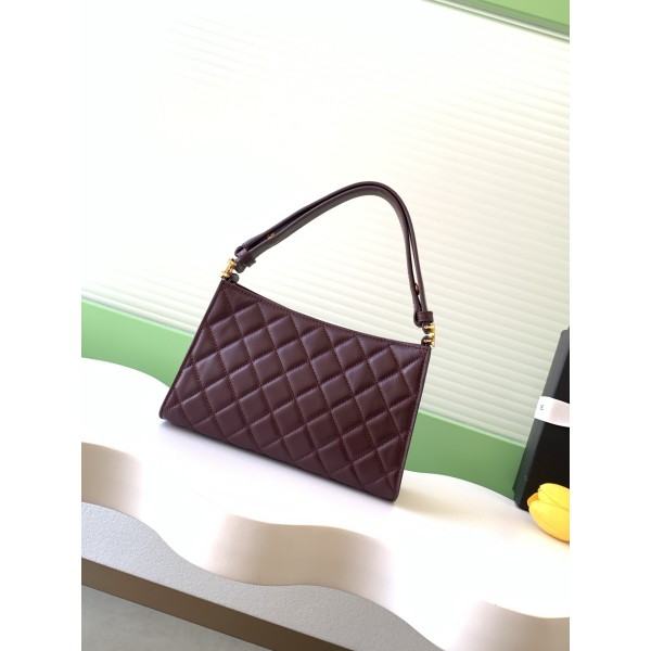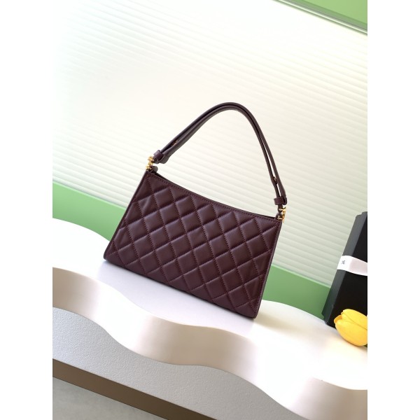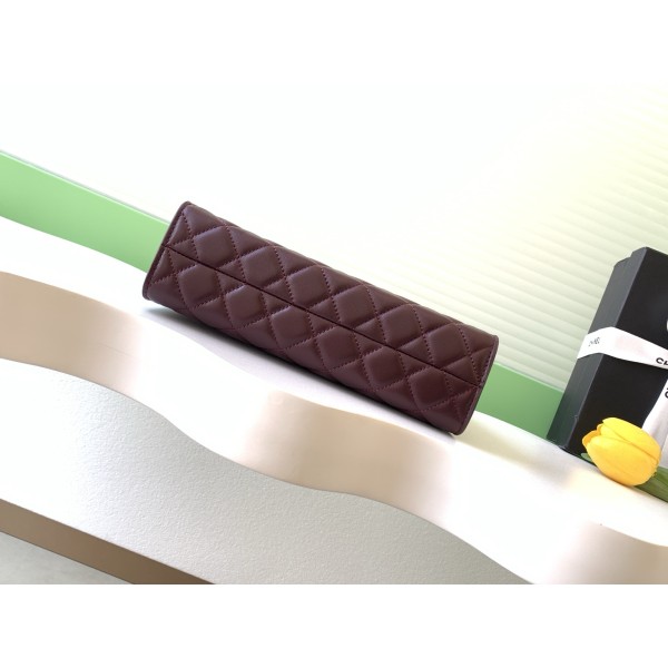 특징: 블랙 램스킨과 클래식 퀼팅의 조화로 섬세하고 부드러운 광택이 특징 포인트: 골드 하드웨어와 조절 가능한 핸들로 토트 또는 숄더백 연출 가능 비주얼: 내부 버건디 안감과 골드 단추 디테일로 크리스마스 분위기 완성 활용: 가볍고 콤팩트하여 데일리 출퇴근이나 연말 모임 룩에 최적 사이즈: 14 * 22 * 7.5 cm ㅡ #가방