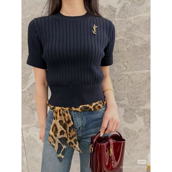 YSL 생로랑 브로치 골지 반팔 니트 의류 > 여성 TEE& TOP