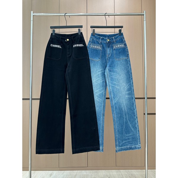Chanel 샤넬 레터링 자수 더블 포켓 기모 데님 팬츠 청바지 의류 > 여성 BOTTOM