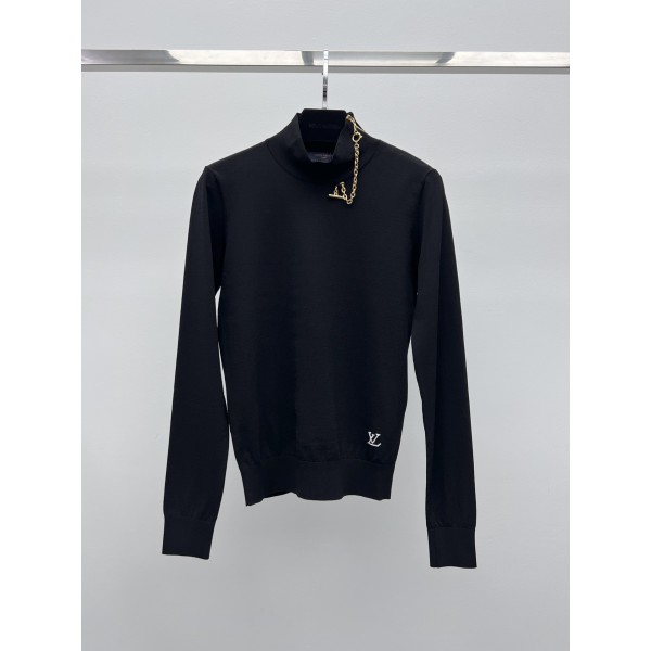 특징: 루이비통만의 아이코닉한 디자인이 돋보이는 고퀄리티 니트입니다. 네크라인을 따라 흐르는 비대칭 지퍼 디테일이 우아하면서도 유니크한 무드를 연출합니다. 소재 및 핏: 세컨드 스킨(Second Skin): 실크처럼 부드럽고 신축성이 뛰어난 니트 소재를 사용하여 몸에 완벽하게 밀착되는 최상의 착용감을 선사합니다. 포인트: 가슴 부분의 배색 LV 로고가 심플한 디자인에 확실한 브랜드 아이덴티티를 더해줍니다. 스타일링: 세련된 실루엣으로 단독 착용은 물론 자켓이나 코트 안의 이너로 활용하기 매우 좋습니다. 사이즈: S, M, L ㅡ #의류