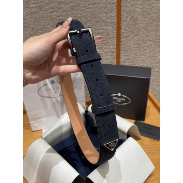 스타일: 심플하면서도 정교함이 느껴지는 절제된 디자인 소재: 고급스러운 질감의 소가죽 스웨이드 소재 디테일: 벨트 끝부분에 장식된 프라다 특유의 에나멜 삼각형 금속 로고가 포인트 사이즈: 너비 3.5cm (다양한 팬츠에 매치하기 좋은 표준 폭) ㅡ #벨트