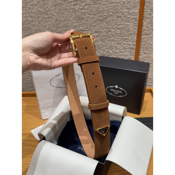 스타일: 심플하면서도 정교한 디자인으로 절제된 세련미를 강조 소재: 고급스러운 질감의 소가죽 스웨이드 소재 디테일: 벨트 끝부분에 프라다의 상징적인 에나멜 트라이앵글 금속 로고가 장식되어 확실한 브랜드 아이덴티티를 선사 사이즈: 너비 3.5cm (슬랙스나 데님 등 다양한 스타일에 매치 가능) ㅡ #벨트