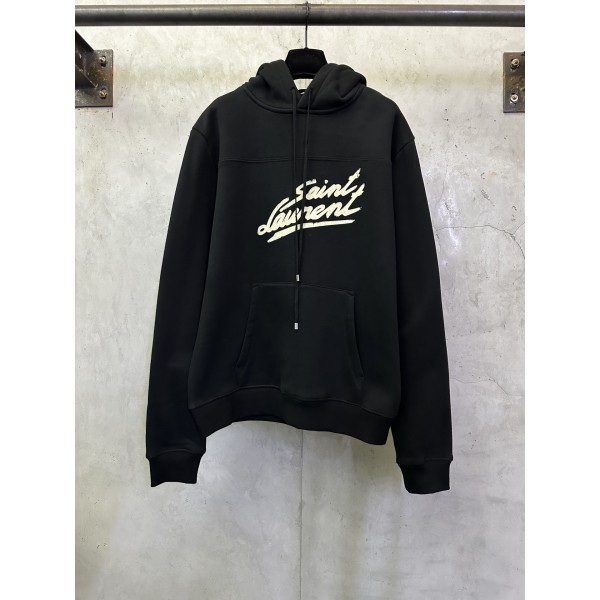 디자인: 생로랑 시그니처 로고가 돋보이는 깔끔하고 클래식한 후디 소재: 350g 코마사 진주 기모 원단 (부드럽고 따뜻한 촉감) 특징: 오리지널 규격 부자재 및 마감 처리, 남녀공용 컬러: 블랙 사이즈: S / M / L / XL ㅡ #의류