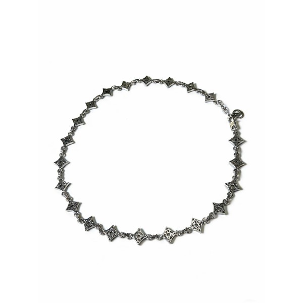 스타일: 락 시크와 펑크 무드가 돋보이는 빈티지 테이 은(Thai Silver) 스타일의 최신상 모델 공정/특징: 정교한 빈티지 에이징(Antique) 처리로 묵직한 질감을 구현 (시중의 흔한 유광 저가형과 차별화) 추천: 남녀 공용 디자인으로 커플 목걸이 및 스트릿·트렌디 룩 포인트 아이템으로 최적 사이즈: 기본 체인 길이 55cm (길이 조절 가능) ㅡ #etc