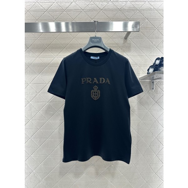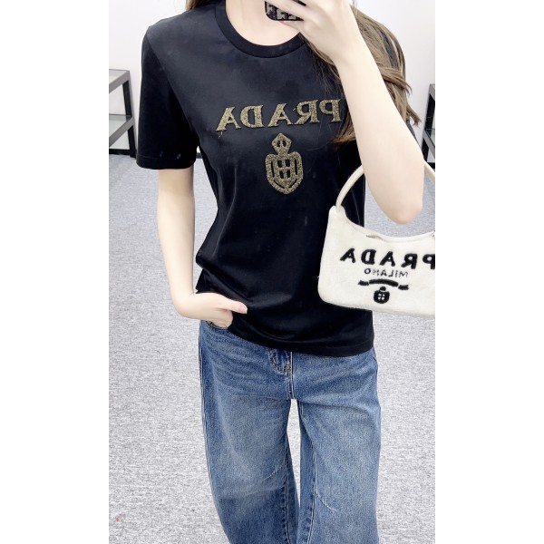 Prada 프라다 골드 레터링 로고 반팔 티셔츠 의류 > 여성 TEE& TOP