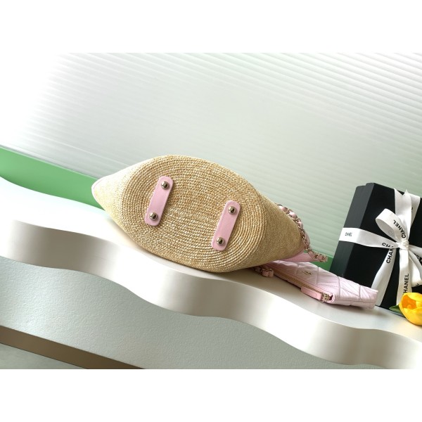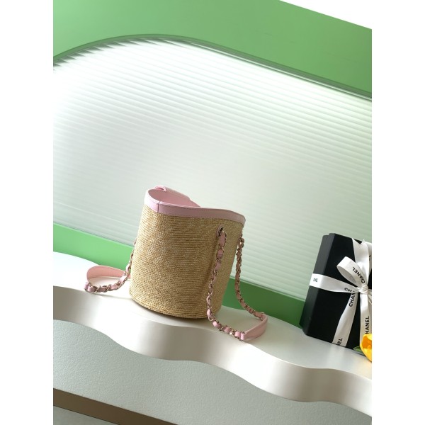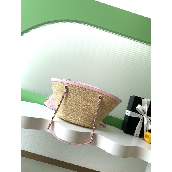 • Chanel 샤넬 26C 라피아 스트로우 믹스 바스켓백 버킷백 (핑크) 가방