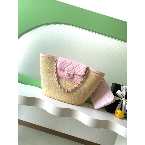 • Chanel 샤넬 26C 라피아 믹스 바스켓백 (핑크/라지) 가방