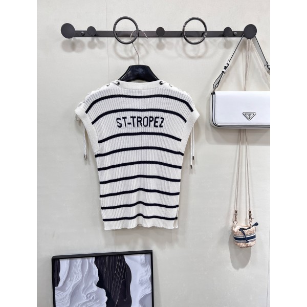 디올(DIOR) 스트라이프 숄더 버튼 꼬임 니트 베스트 의류 > 여성 TEE& TOP