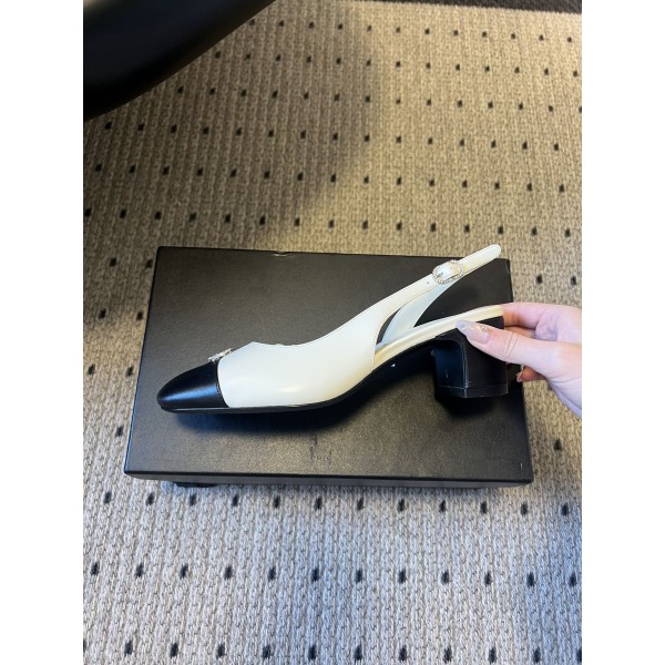 디자인: 시그니처 블랙&화이트 배색에 라운드 더블 C 메탈 로고 적용, 슬링백 디자인 스트랩: 길이 조절 가능한 후크 스트랩 어퍼: 양가죽 내피: 양가죽 아웃솔: 이탈리아 천연 가죽 아웃솔 굽 높이: 5cm 사이즈: 35–40 ㅡ #신발