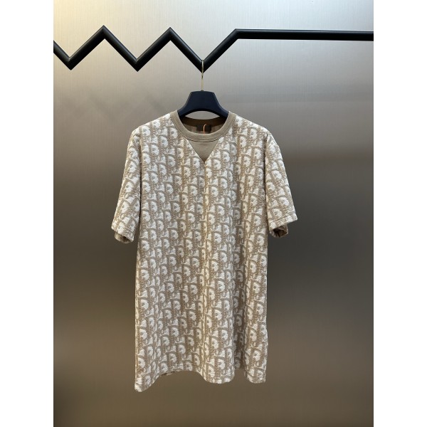 디올(DIOR) 오블리크 올오버 반소매 티셔츠 의류 원단: 디올 커스텀 자카드 원단, 전면에 Dior Oblique 패턴을 적용한 올오버 자카드 조직 디자인/디테일: V자 형태의 상침(스티치) 디테일 적용, 과하지 않은 포인트 요소로 전체 디자인 밸런스 유지 사이즈: S / M / L / XL ㅡ #의류