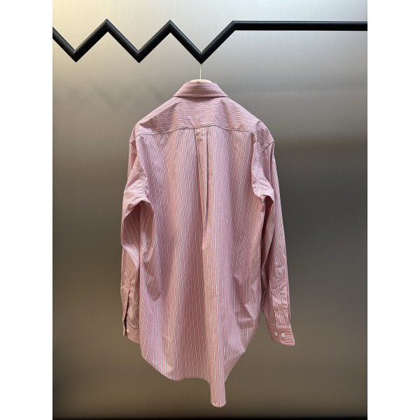 원단: 핑크 톤의 커스텀 세로 스트라이프 셔츠 원단 봉제 공정: 봉제선이 깔끔하고 평탄한 마감 사이즈: 36 / 38 / 40 / 42 ㅡ #의류