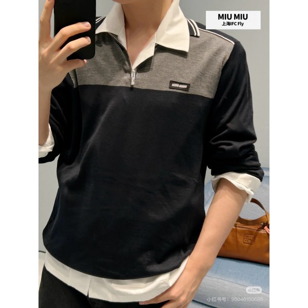 miumiu 미우미우 컬러 블록 하프 집업 긴팔 니트 의류 > 여성 TEE& TOP