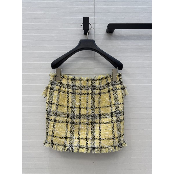 Balmain 발망 옐로우 블랙 체크 트위드 미니스커트 치마 의류 > 여성 BOTTOM