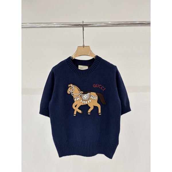 Gucci 구찌 포니 자수 & 쥬얼리 데코 니트 반팔 의류 > 여성 TEE& TOP