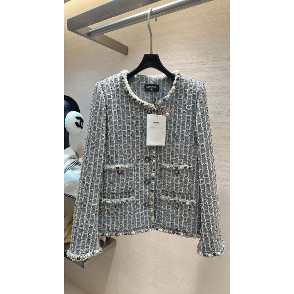 Chanel 샤넬 그레이 블루 핸드메이드 펄 트위드 자켓 재킷 의류 > 여성 아우터