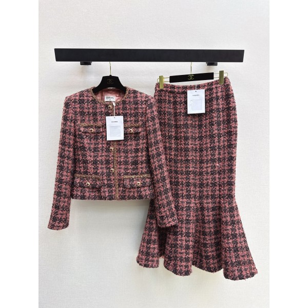 Chanel 샤넬 명품 무드 트위드 자켓 재킷 & 머메이드 스커트 치마 셋업 세트 의류 > 여성 아우터