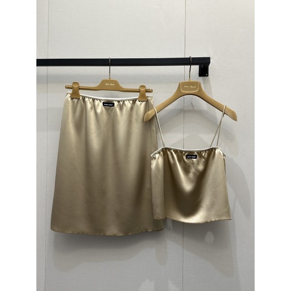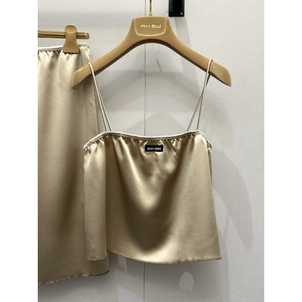 고급스러운 광택과 찰랑이는 실루엣이 돋보이는 2026 시즌 신상 아세테이트 뷔스티에 & 스커트 세트입니다. 디자인: 가슴 라인의 섬세한 화이트 레이스 꽃무늬와 미우미우 로고가 어우러진 우아한 무드 소재: 실크처럼 매끄러운 광택과 압도적인 드레이프성을 가진 수입 프리미엄 아세테이트 소재 핏 & 특징: 가슴 부분 미세 신축성 밴딩으로 체형 보정 및 편안한 착용감 제공 (1:1 복각 하이엔드 버전) 스타일: 단독 착용으로 화려한 여름룩을, 자켓이나 가디건 안 이너로 세련된 레이어드 룩 완성 사이즈: S / M / L ㅡ #의류