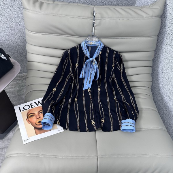 구찌(Gucci) 프렌치 타이 체인 프린트 블라우스 셔츠 의류 > 여성 TEE& TOP