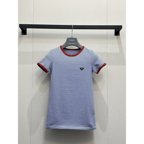 프라다(PRADA) 스트라이프 배색 반팔 티셔츠 의류 > 여성 TEE& TOP