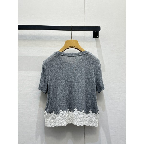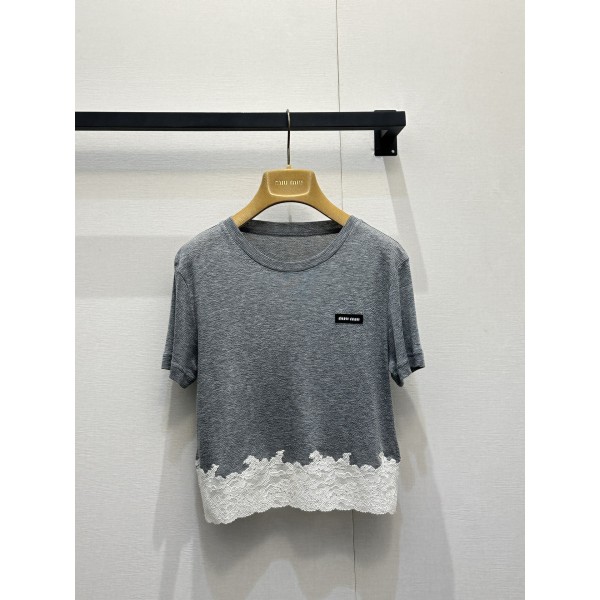 미우미우(MIU MIU) 레이스 배색 반팔 티셔츠 의류 요약정보 및 구매