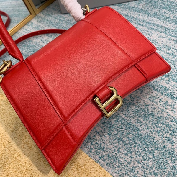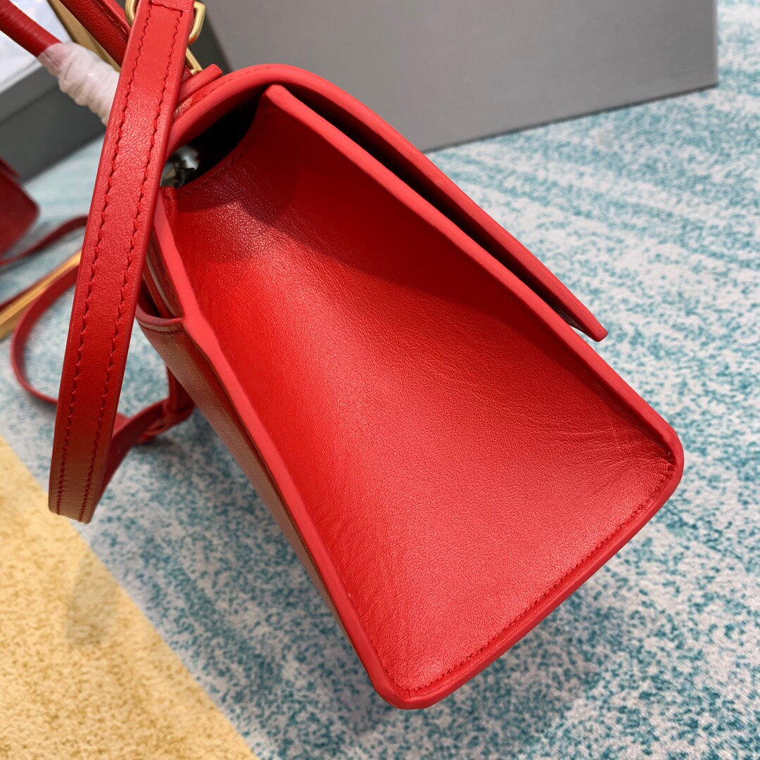 • 발렌시아가 스몰 Hourglass 레드 금장 탑핸들 백