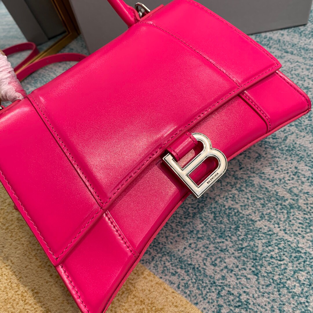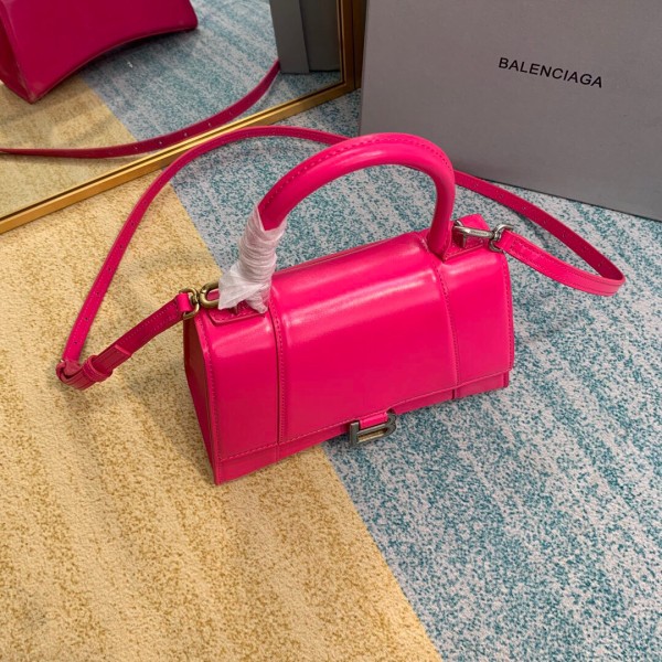 • 발렌시아가 스몰 Hourglass 핫 핑크 탑핸들 백