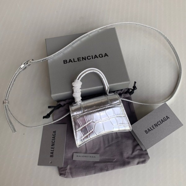 • 발렌시아가 Mini Hourglass 실버 탑핸들 백