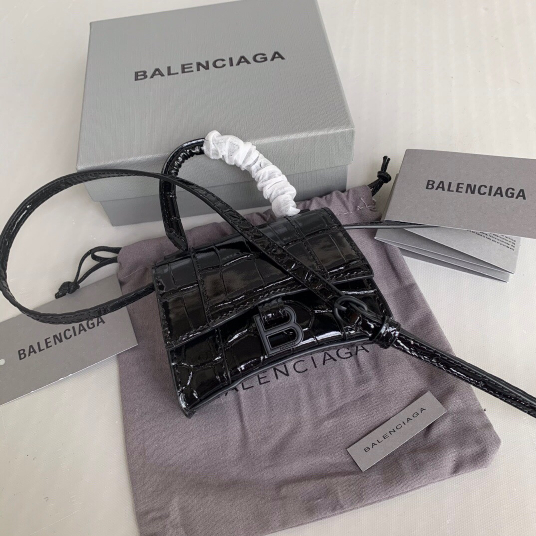 발렌시아가 Mini Hourglass 블랙 탑핸들 백 > 발렌시아가