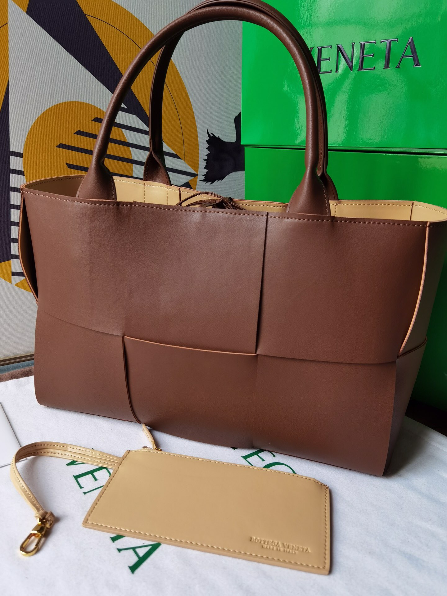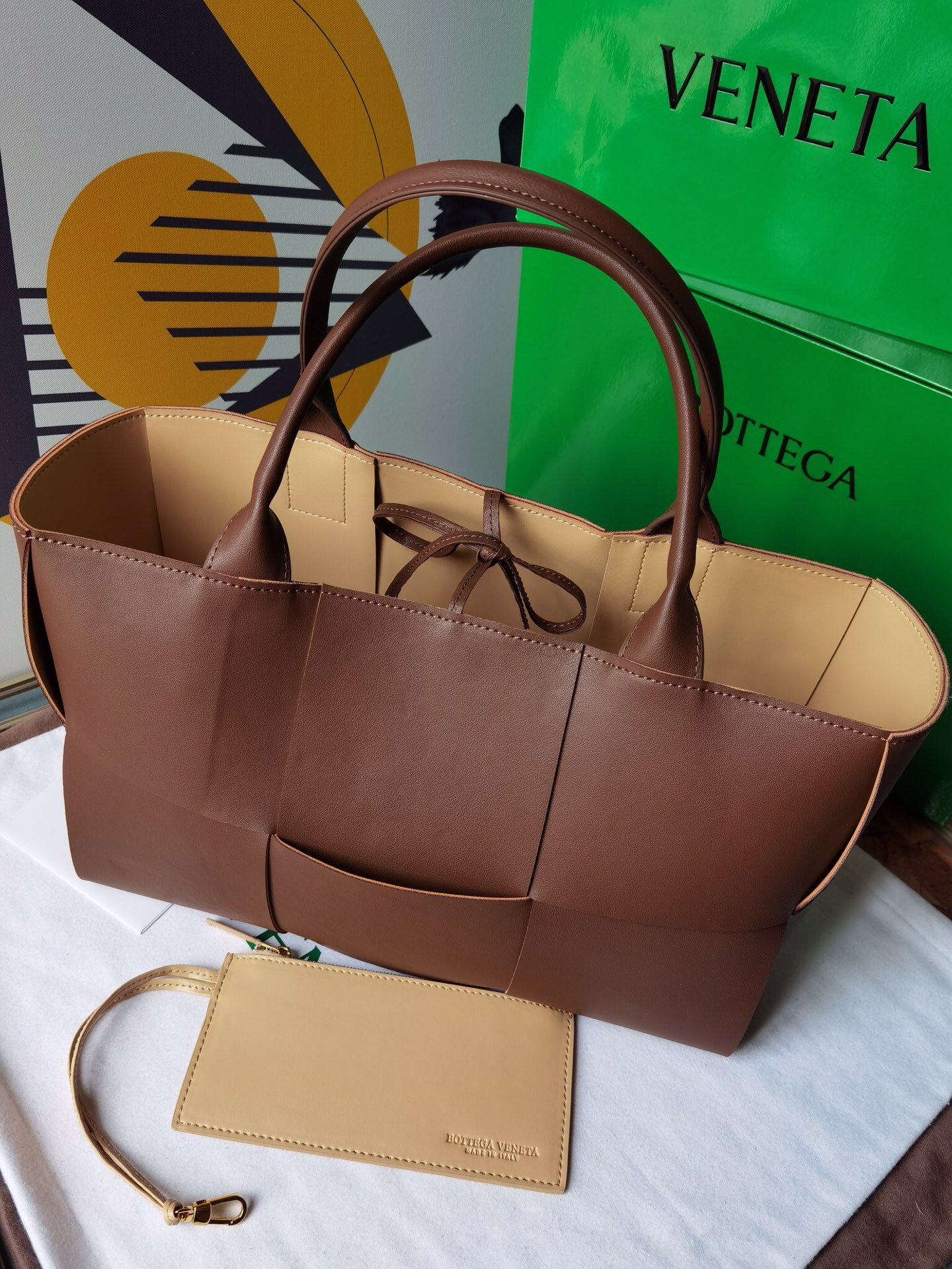 • 보테가베네타 아르코 인트레치아토 다크브라운 토트백