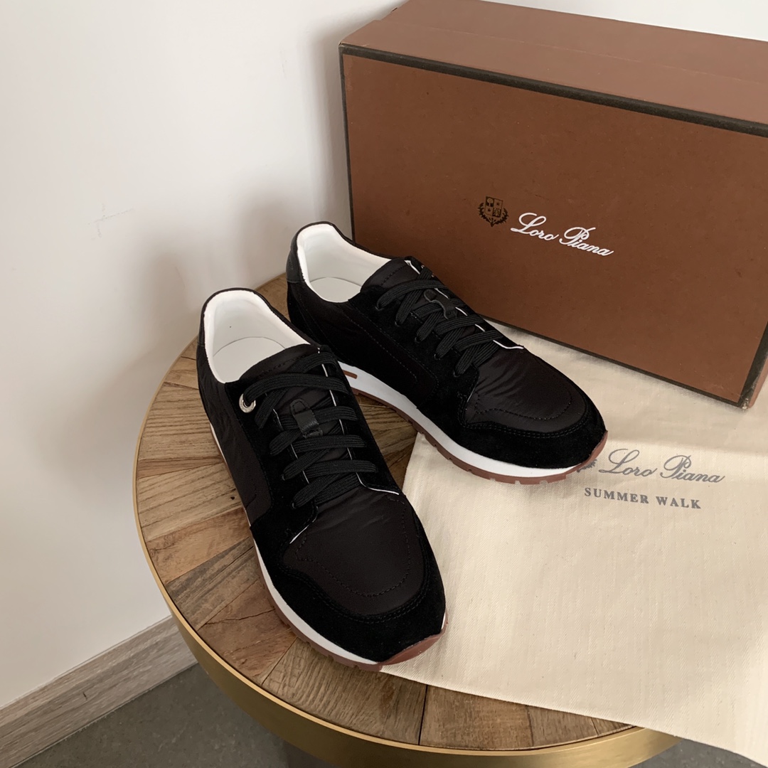 로로피아나 스웨이드 트리밍 여성 블랙 스니커즈 > 스니커즈