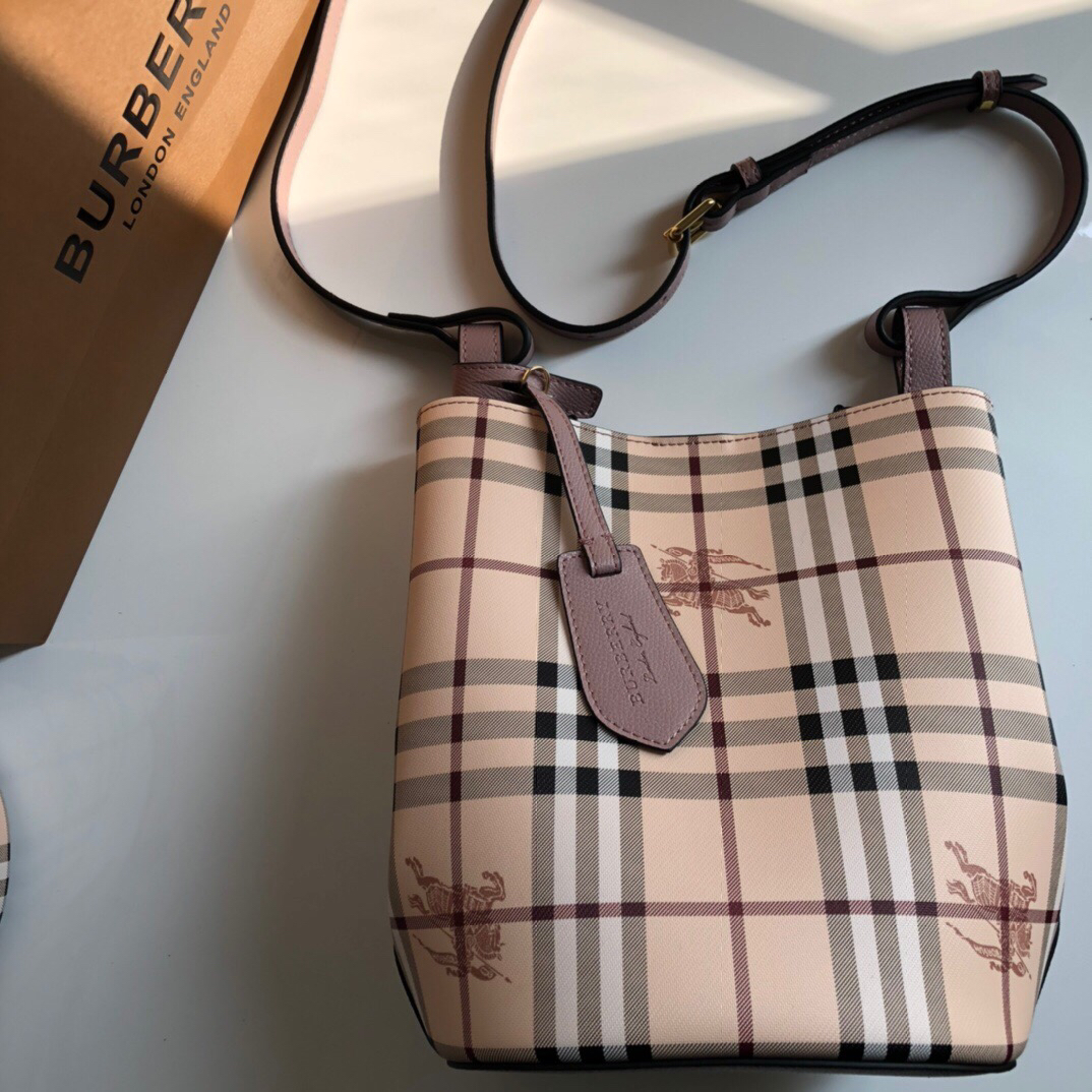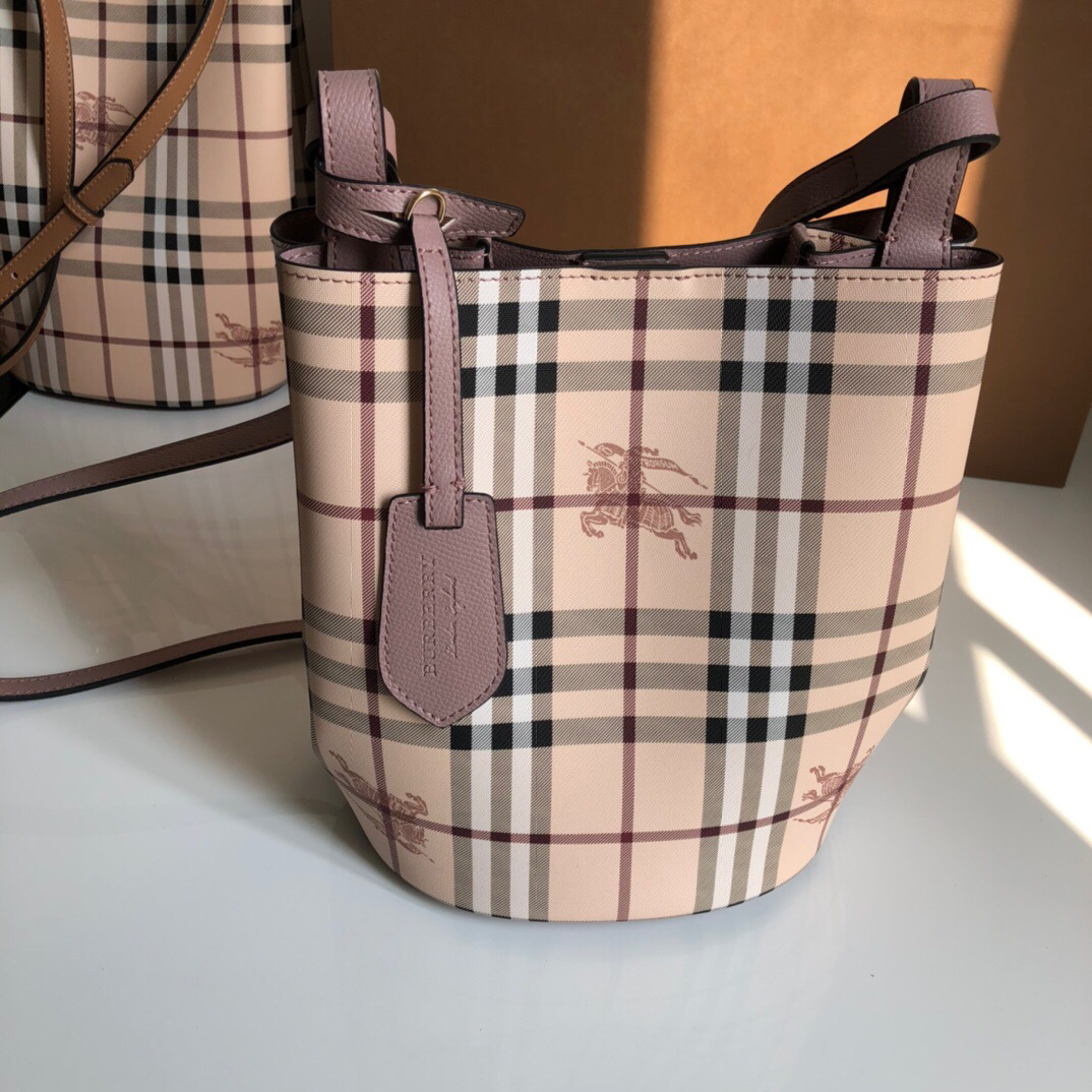 • 버버리 헤이마켓 스몰 체크 소프트 그레이 버킷백