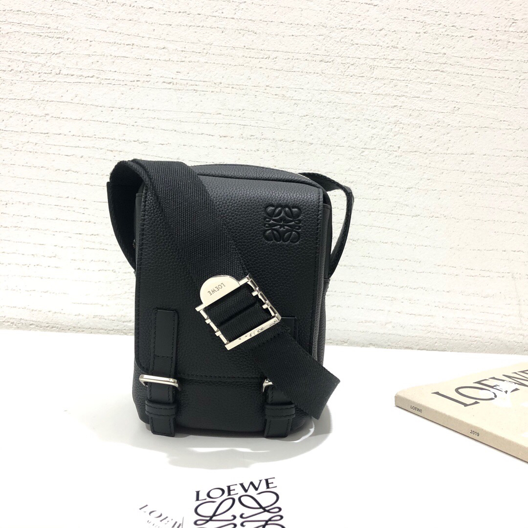 로에베 소트프 카프스킨 그레인 밀리터리 블랙 크로스백 > 로에베