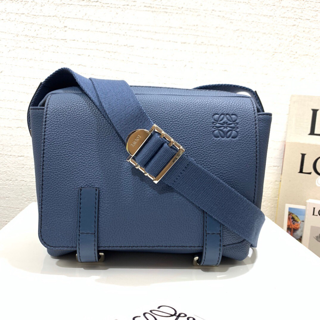 • 로에베 밀리터리 소프트 카프스킨 블루 메신저백