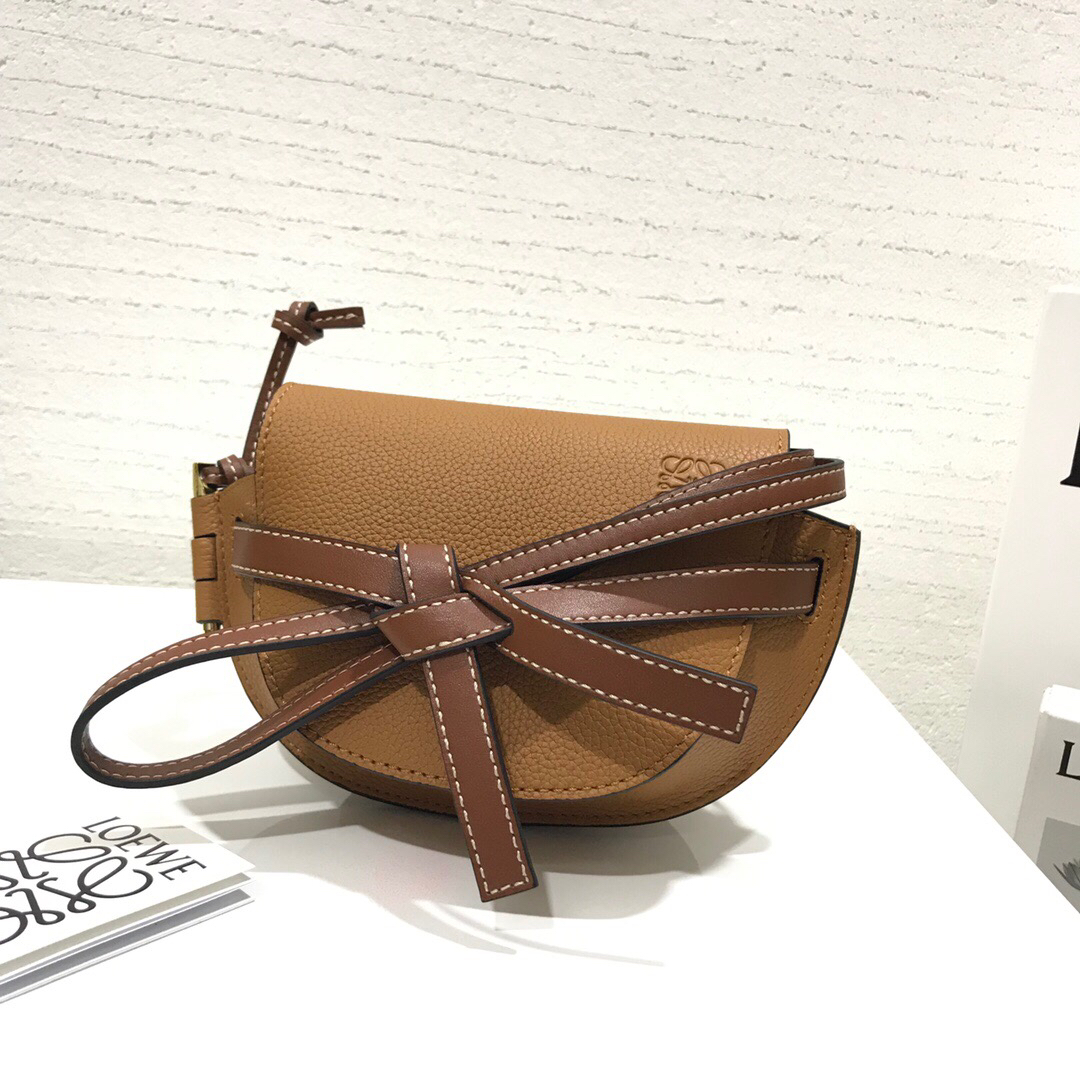 • 로에베 카프스킨 조약돌 스몰 게이트 브라운 숄더백