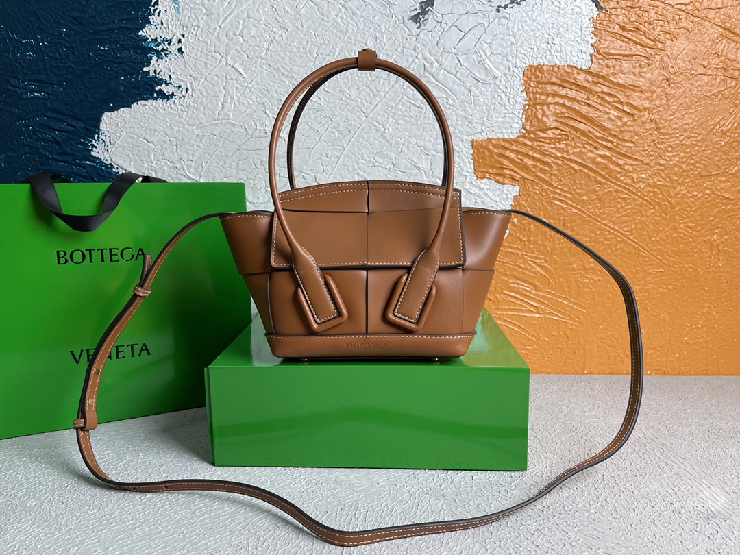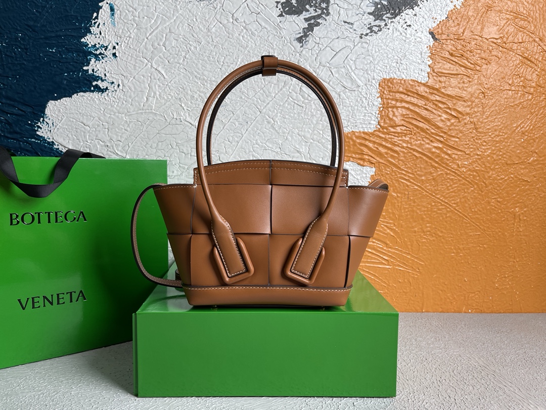 • 보테가베네타 Arco 인트레치아토 스몰 카라멜 토트백