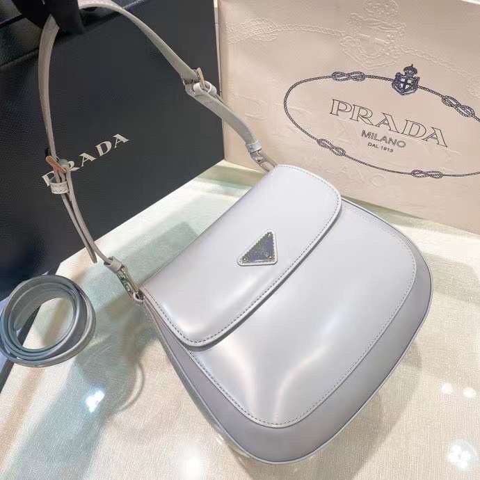 • 프라다 클레오 브러시드 레더 그레이 숄더백 1BD303