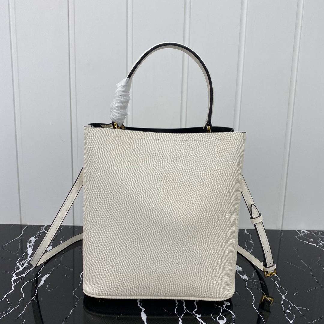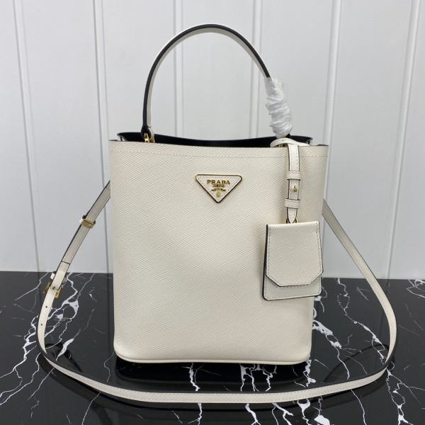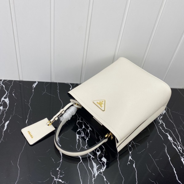 • 프라다 사피아노 파니에 레더 화이트 탑핸들 토트백 1BA212