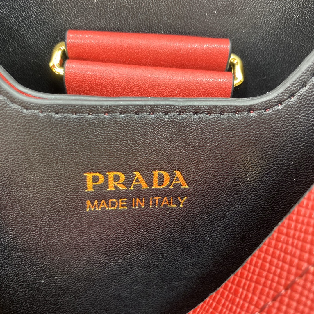 • 프라다 사피아노 두블레 미니 레드 버킷백 1BA217