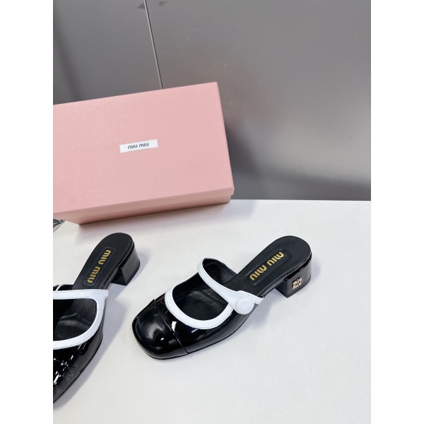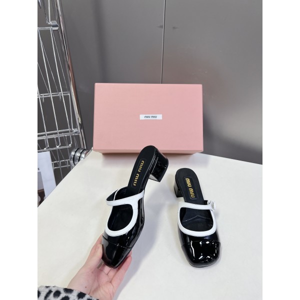 • miumiu 미우미우 페이던트 가죽 펌프스 뮬 슬리퍼 샌들 여성 구두 신발