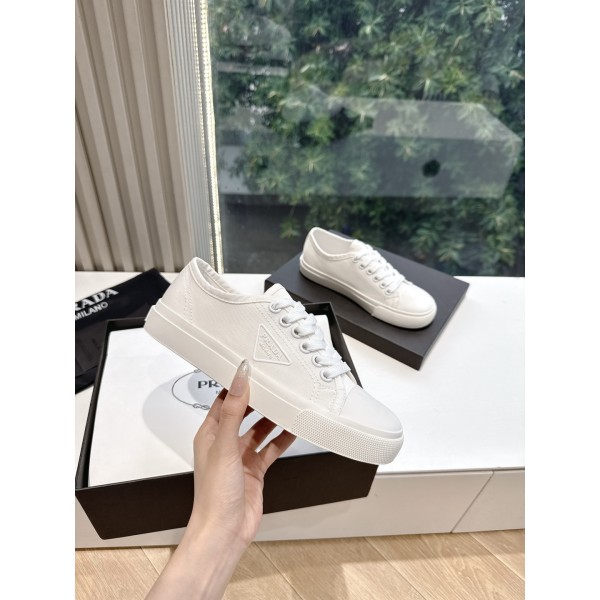 프리미엄 디테일 퀄리티 다채로운 배색 디자인으로 세련되고 트렌디한 무드 프라다 특유의 실버로고 소가죽 인솔 & 전용 러버 아웃솔 겉감: 수입 캔버스 내피: 천연 가죽 사이즈: 35-40 ㅡ #신발